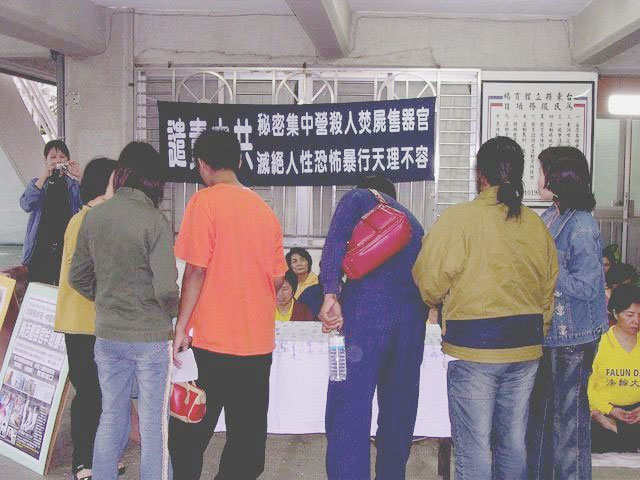 Many citizens were shocked after seeing the photos depicting Falun Gong practitioners being mercilessly killed. Ms. Zhang said, "It's too cruel!" "It's a shame to have such a thing occurring in modern civilized society." She immediately signed her name and also found her husband to come to sign his name.