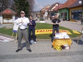 (Clearwisdom.net) On Saturday April 22, 2006, Falun Gong practitioners visited Tvrdosin, a small town in northwest Slovakia. They set up their table in Trojicne Square, demonstrated the Falun Gong exercises and erected display stands and information boards revealing the persecution which has been taking place in China for almost seven years. One of the information boards referred to the newly exposed concentration camps in China where Falun Gong practitioners are killed for their internal organs, which are then sold to transplantation centers all over China.