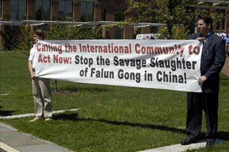 (Clearwisdom.net) At noon on April 29, 2006, practitioners from the greater Philadelphia region held a rally at the Liberty Bell and protested the Chinese Communist Party's (CCP's) atrocities of organ removal from living Falun Gong practitioners in China. Three doctors gave speeches and condemned the Chinese doctors' inhuman action of organ removal under the CCP's persecution policy. A reporter from New York told the media that information from the CCP cannot be trusted.