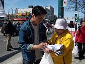 Passers-by sign the petition to investigate the CCP's atrocities of organ removal from living Falun Gong practitioners.