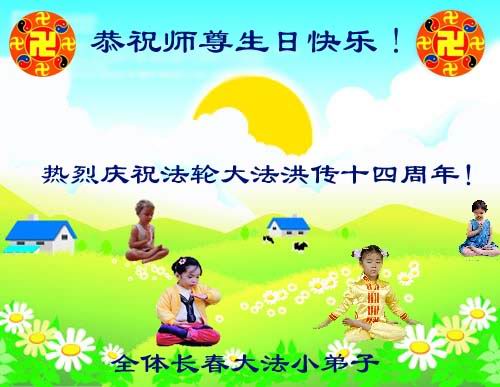 All Little Falun Dafa Practitioners in Changchun Respectfully Wish Revered Master Happy Birthday and Celebrate the Fourteenth Anniversary of Falun Dafa's Public Introduction!