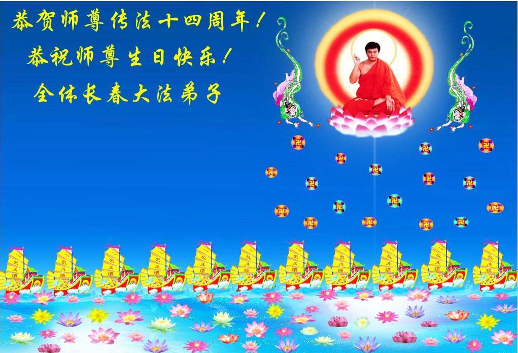 All Falun Dafa Practitioners in Changchun City Respectfully Wish Revered Master Happy Birthday and Celebrate the Fourteenth Anniversary of Falun Dafa's Public Introduction!