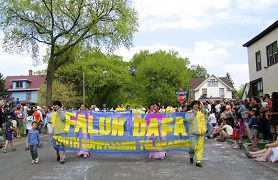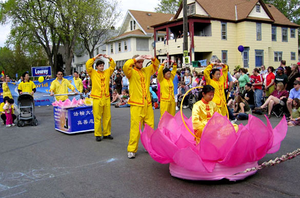 (Clearwisdom.net) On a sunny day, the annual May Day Parade in St. Paul, Minnesota, has come again. In the parade, Falun Gong practitioners' entry was very eye-catching. Some spectators yelled enthusiastically: "Oh, Falun Dafa!" "Falun Gong, we support you!"