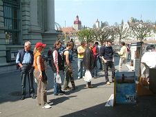 Three tourists from Italy asked for the truth clarification materials. After a practitioner gave them materials, as she did not speak Italian, she did not know how to explain to them the fact that the CCP's crimes of removing organs from live Falun Gong practitioners so that she did not ask them to sign the petition. After reading the materials and forms of petition in German on the table, a lady among them initiatively signed the petition.