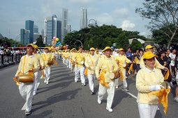 (Clearwisdom.net) Falun Gong practitioners in Singapore participated for the fourth time in the annual Big Walk held by the New Paper since 2002. On Sunday, May 21, 2006, about 55,000 people participated in the walk. Falun Gong practitioners' waist drum troupe and "celestial maidens" troupe became the focus of the event.