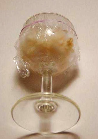 Next, we had a good-word / bad-word test. We prepared two cups of cooked rice and had the students say one good word to the first cup and say a bad word to the second one. For example, they would say, "thank you," "you are beautiful" to the first one and "I don't like you," "you are ugly" to the second one. After that, we wrapped two cups with plastic film and labeled them.