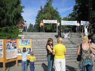 Practitioners from the Caucasus area attended this activity. Practitioners displayed the truth-clarifying boards and re-enacted the torture that the CCP applies to Falun Gong practitioners. The citizens were shocked and many of them signed their names on the petition.