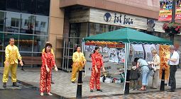 (Clearwisdom.net) As June 24 was the date for a big commodity fair, many people came all the way from over 100 miles away to Inverness. That day, Falun Gong practitioners in Scotland held various activities to explain the facts about Falun Gong and expose the Chinese Communist regimes genocidal persecution against Falun Gong. They called on the general public to pay attention to the situation so as to help stop the Chinese Communist Party's (CCP) atrocities of harvesting and selling of organs taken from living Falun Gong practitioners.