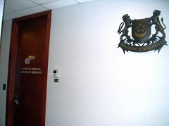 ![]() Falun Gong practitioners unfurl a banner in front of the Singapore Consulate |