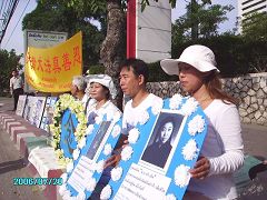 (Clearwisdom.net) On the afternoon of July 20, 2006, Falun Gong practitioners assembled in front of the Chinese Embassy, protesting the seven-year-long persecution and the Chinese Communist Party's crime of harvesting organs from living Falun Gong practitioners.