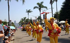 ![]() Falun Gong practitioners participate in parade in Coronado and show the beauty of Falun Dafa. |