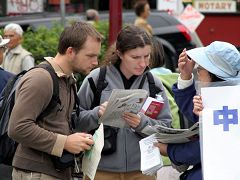 At the rally, the organizer also held a truth clarification photo exhibit exposing the CCP's harvesting organs from living Falun Gong practitioners. Many passersby congregated and learned about the truth of this atrocity, and some passersby requested to learn the Falun Gong practice on the spot.