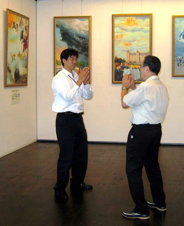 The host of the art exhibition said that more and more Japanese people are becoming interested in Falun Gong now. Many of them learned the truth about Falun Gong and the brutal persecution from the art exhibitions. They found it difficult to believe that such persecution could exist in the 21st century. People encouraged practitioners to keep clarifying the truth. Some people said that although the economy is developing in China, the human rights violations are as bad as North Korea. Some Chinese people also came to the exhibition. One Chinese lady praised practitioners for their spirit.