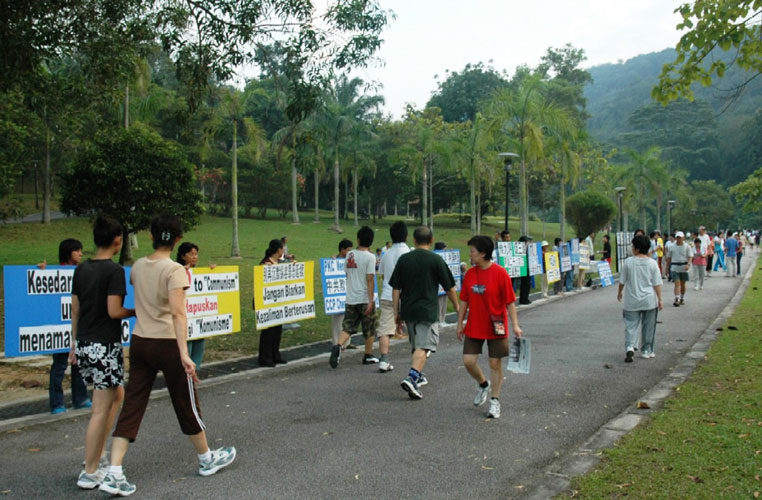 (Clearwisdom.net) On September 30, 2007, the day before the Chinese Communist Party's (CCP) China National Day, people in Kuala Lumpur, Malaysia, who are concerned about China's future, held a rally in support of the people who have quit the CCP and its affiliated organizations in a park in Kuala Lumpur. They hope that in the near future, with the progress of the great tide of quitting the CCP, the Chinese people will be set free from the tyranny of the CCP and walk toward a new life.
