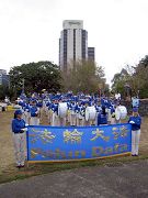 The Divine Land Marching Band and Heavenly Chorus of Sydney performed for the event. The band played the music "Falun Dafa is good", "Fa rectifies the Universe" and "Drums and Trumpets Shake the World in Ten Directions". The Chorus sang two songs: "Tides after Tides of Quitting CCP" and "The World Needs Truth-Compassion-Tolerance", which touched many people's hearts.