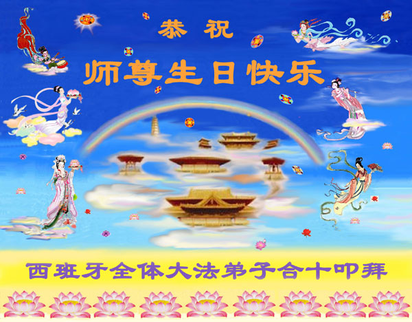 Falun Dafa practitioners from Spain respectfully wish Revered Master Happy 56th Birthday and Celebrate the Eighth World Falun Dafa Day!
