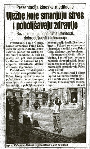(Clearwisdom.net) Sarajevo's newspaper "Dnevni Avaz," the most highly circulated daily paper in Bosnia and Herzegovina reported on the events during World Falun Dafa Day in downtown Sarajevo, the capital of Bosnia and Herzegovina, on May 13th, 2007 as follows: