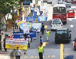 (Clearwisdom.net) On March 23, 2008, Malaysia and Singapore Service Centers for Quitting the Chinese Communist Party (CCP) jointly held a march and rally to support the 34 million people who have quit the CCP and/or its affiliated organizations. The parade set off at Jalan Raja Laut and marched all the way to Independence Square, a famous landmark in Kuala Lumpur.