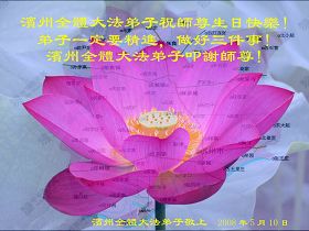 Falun Dafa Practitioners from Jinan Respectfully Wish Revered Master a Happy Birthday and the 9th World Falun Dafa Day!