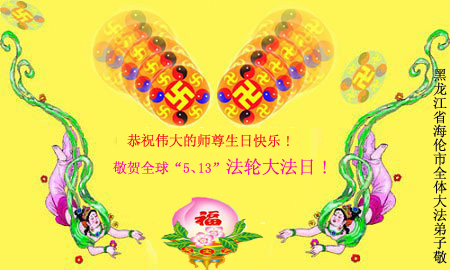 Falun Dafa Practitioners from Hailun, Heilongjiang Province, Respectfully Wish Revered Master a Happy Birthday and the 9th World Falun Dafa Day!