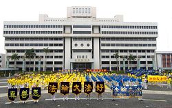 (Clearwisdom.net) On May 10, 2008, more than 600 Falun Gong practitioners from Taoyuan, Taiwan, held an activity in front of the city government building to celebrate the 9th World Falun Dafa Day. Practitioners performed songs and dances. After the event, a parade was held.