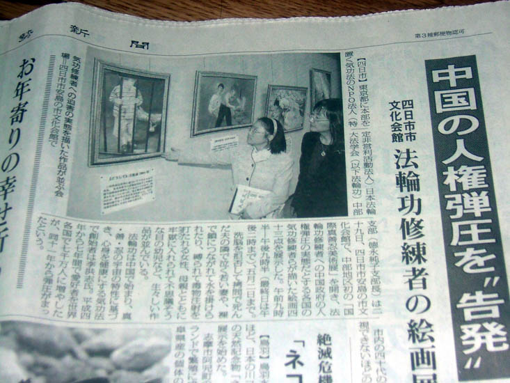 (Clearwisdom.net) A four-day long "Truthfulness-Compassion-Forbearance" Art Exhibition was held on April 29 - May 2 in the city of Yokkaichi, in Mie Prefecture, Japan.