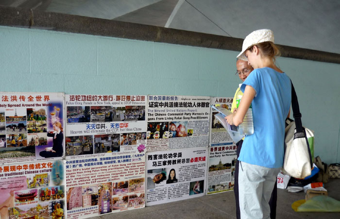 Facing this new form of persecution, Singapore practitioners have continued their outdoor truth-clarifying activities. In addition, they are exposing the assaults upon practitioners in New York as part of their discussions with tourists and locals.
