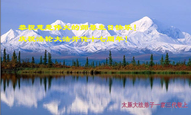 A Practitioner's Family of Three Generations from Taiyuan City Respectfully Wish Compassionate Great Master Happy Birthday! Celebrating the 17th Anniversary of Falun Dafa's Public Introduction!