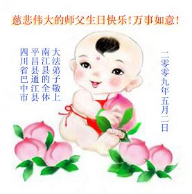 Practitioners from the following counties, cities and provinces also wish revered Master a Happy Birthday and celebrate World Falun Dafa Day. They also expressed their determination to do the three things well, fulfill their prehistoric vows, and live up to revered Master's compassionate and arduous salvation.