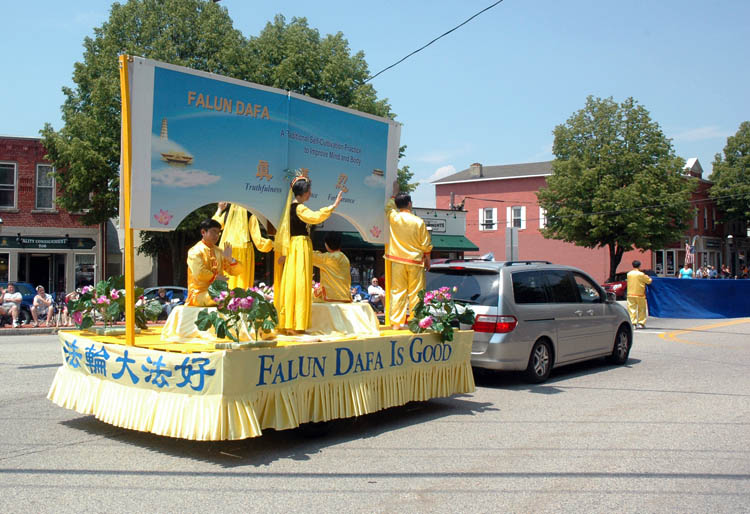 (Clearwisdom.net) Falun Gong practitioners in Connecticut participated in the Memorial Day Parade in Colchester, Connecticut on May 24, 2009. They introduced Falun Dafa and spread the message of Truthfulness, Compassion and Tolerance to local residents. Falun Gong practitioners' beautiful exercise demonstration and elegant float won waves of applauses from parade spectators.