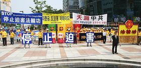 (Clearwisdom.net) On July 19, 2009, it was very hot in Seoul, Korea. Falun Gong practitioners held a rally and march in a Chinese community condemning the CCP's ten-year-long persecution of Falun Gong and calling for an immediate end to this crime against humanity.