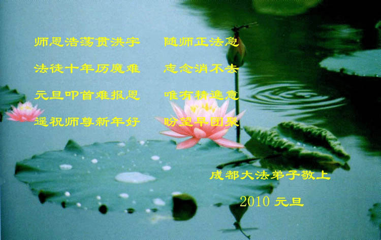 Falun Dafa Practitioners in Chengdu City Respectfully Wish Revered Master a Happy New Year!