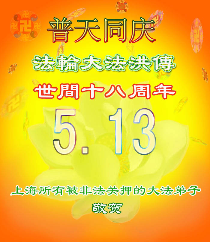Practitioners from Shanghai Who are Illegally Detained Respectfully Wish Revered Master Happy Birthday and Celebrate the 18th Anniversary of Falun Dafa's Public Introduction!