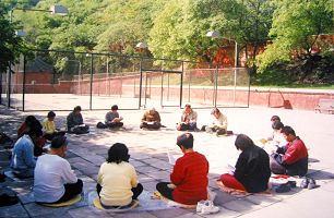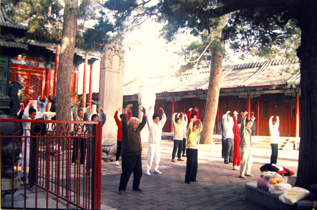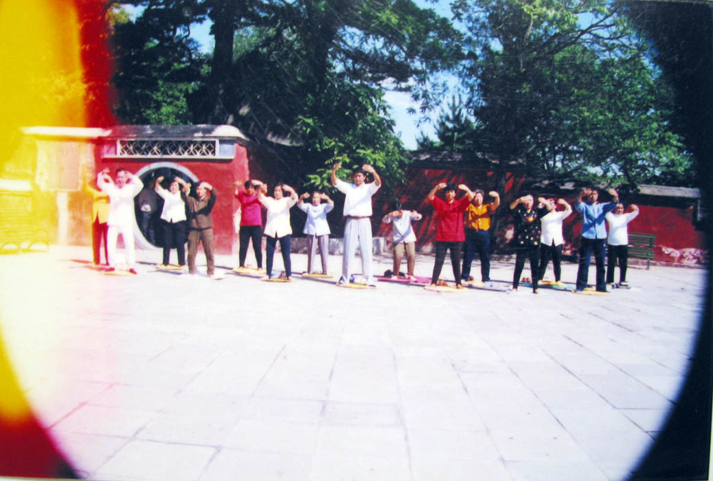 Pictures of Falun Gong practitioners in Langfang doing group exercises at Jietai Temple before July 20, 1999.