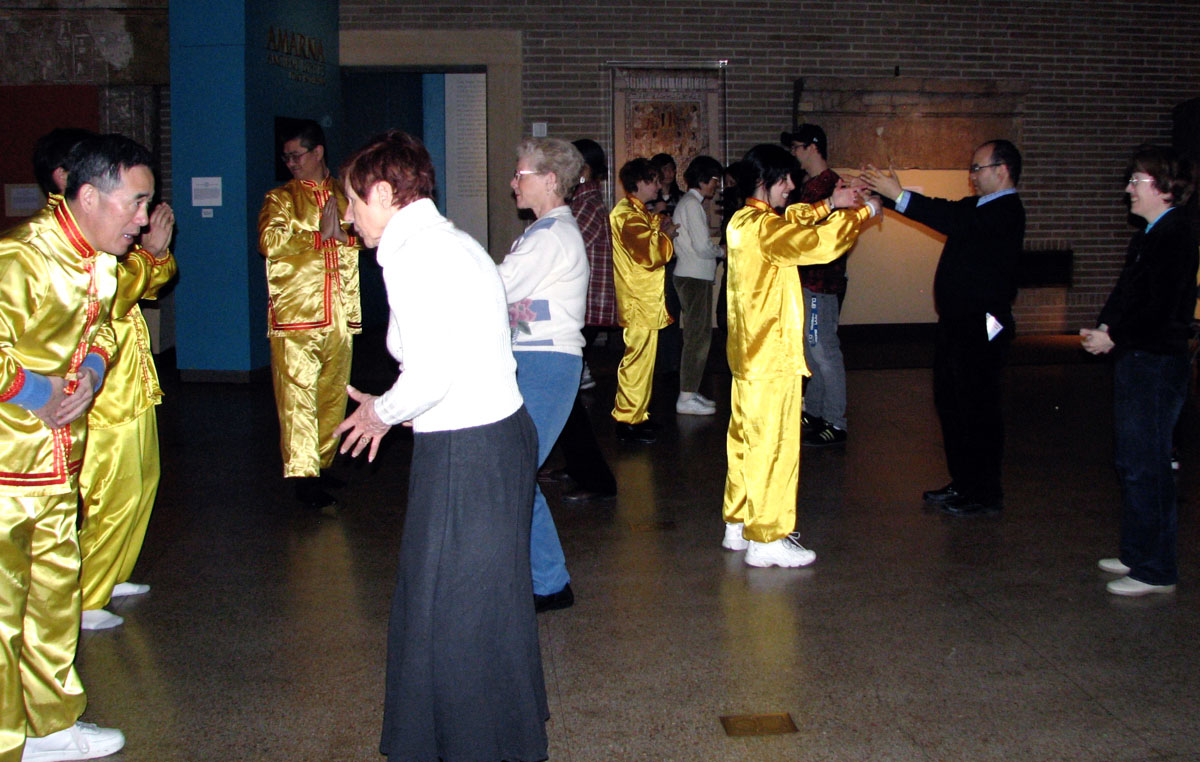 The guard at the museum quietly watched the Falun Gong exercise demonstration, and showed great interest. He wanted to learn it in order to ease his stress. When he learned that Falun Gong exercise instruction was free of charge, and he could download the Falun Gong exercise videos and Master Li Hongzhi's book Zhuan Falun for free from the website, he was surprised and asked, “Is there such a great Master? How can he not charge people for these materials? Where can we find such a good person right now?” He repeatedly said that he was fortunate to learn about Falun Gong.