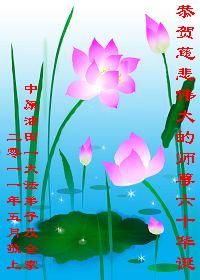 (Clearwisdom.net) On May 13 every year, Falun Dafa practitioners around the world send greeting cards and letters to Clearwisdom.net wishing revered Master happy birthday and celebrating World Falun Dafa Day. Greetings from all profession in China are organized and posted. Only a small portion of the greetings received are translated and listed here: