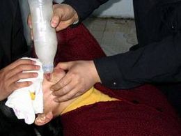 3. Force-feeding water while my nose was covered. Sometimes the police would combine this torture with the second one. Once I was in such agony that I struggled with my legs and fell off the stool.