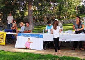 Truckee Falun Gong practitioners set up a stand on World Peace Day