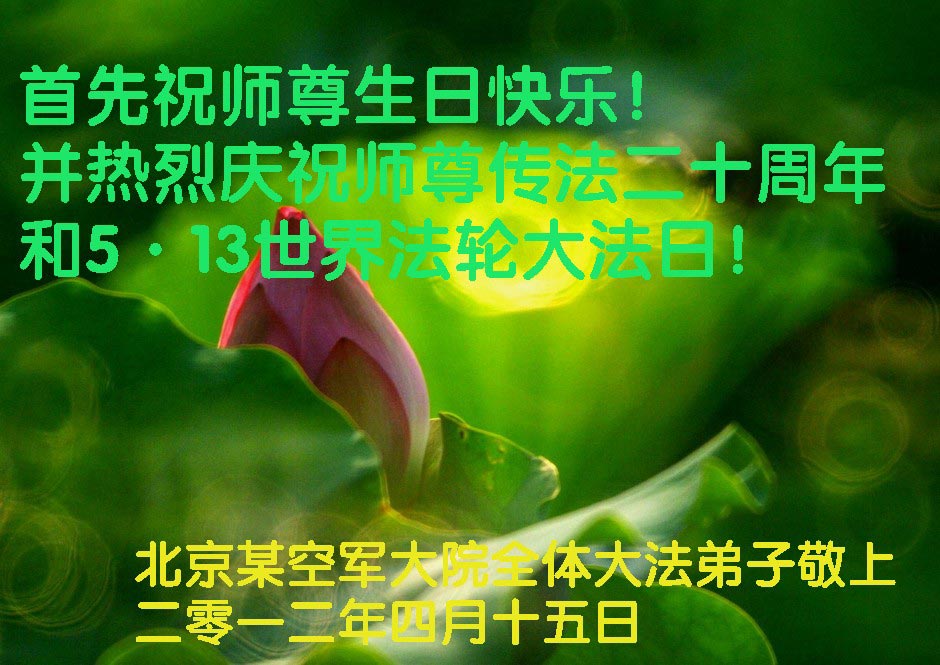 Practitioners from an Air Force Compound in Beijing Respectfully Wish Master Happy Birthday and Celebrate World Falun Dafa Day!