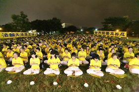 Falun Gong practitioners hold a candlelight vigil in Guang Ming Park in Chungli, Taoyuan, Taiwan