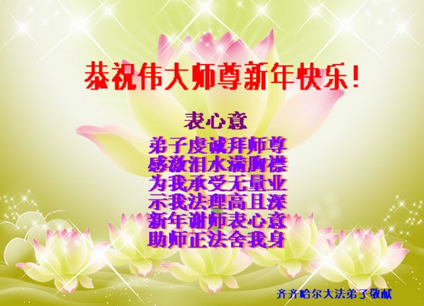 In this report, we list some of the 22 greetings sent to revered Master from Falun Dafa practitioners in Qiqihar City, Heilongjiang Province, China: