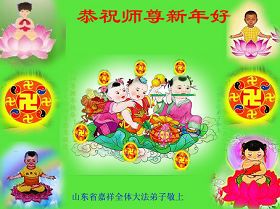Falun Dafa practitioners from the following areas respectfully wish Master Li Hongzhi a Happy Chinese New Year: Penglai, Shandong; Suining, Sichuan; Rizhao, Shandong; Jiaxiang, Shandong; Qufu, Shandong; Bayan, Heilongjiang; Laizhou, Shandong; Yingkou, Liaoning; Mudanjiang, Heilongjiang; Jiamusi, Heilongjiang; Dalian, Liaoning; Ha’erbin, Heilongjiang; Suining, Sichuan; Fushun, Liaoning; Laizhou, Shandong; Dazhou, Sichuan.