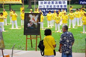 Practitioners in Singapore commemorate the peaceful April 25 Appeal and demonstrate the Falun Dafa exercises.