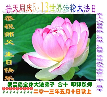Practitioners in Qinhuangdao, Hebei Province, Celebrate World Falun Dafa Day and the 21 st Anniversary of Falun Dafa's Introduction to the Public, and Respectfully Wish Compassionate Great Master Happy Birthday!