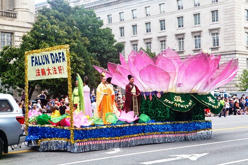 Falun Gong practitioners participate in Washington, DC's Independence Day Parade