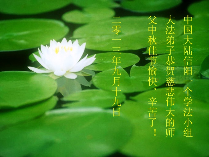 To respectfully wish compassionate great Master Li Hongzhi a Happy Mid-Autumn Festival and express their gratitude for Master's compassionate salvation, practitioners both inside and outside China send congratulatory messages through the Minghui website. What follows is only a portion of the greetings received from practitioners in Henan Province, China.