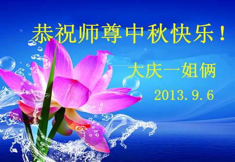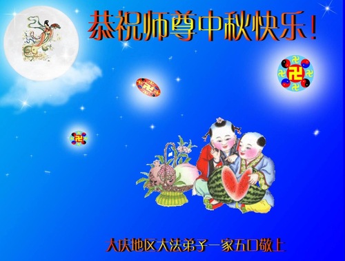 To respectfully wish compassionate great Master Li Hongzhi a Happy Mid-Autumn Festival and express their gratitude for Master's compassionate salvation, practitioners both inside and outside China send congratulatory messages through the Minghui website. What follows is only a portion of the greetings received from practitioners in Daqing City, Heilongjiang Province, China.
