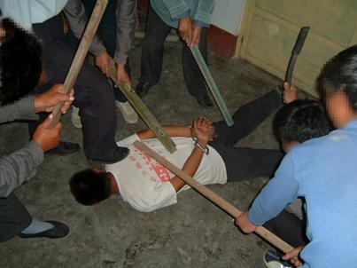 Singing is also used as a form of persecution by the Party. A typical example is the “A Song A Day” torture at Xishanping Forced Labor Camp in Chongqing City: The victim is pressed down to the concrete floor, with his or her hands pulled, twisted and pressed down to the floor, while three or four inmates step on the victim's legs. Then, one inmate grabs the victim's head and bashes it with a plastic stool. Another inmate hits the victim's back, stomach and ankles with a wooden stick, while others bash the victim's ankle joints with plastic stools or food containers. They kick and hit the victim hard. Some also use shoes to beat the practitioner. While the victim is being beaten, a few inmates sing loudly by the window so that others cannot hear the sounds of the beating and the victim's screams.