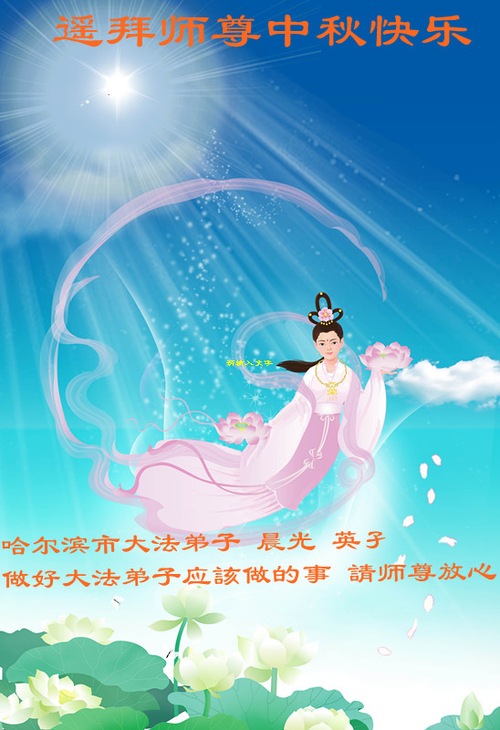 To respectfully wish compassionate great Master Li Hongzhi a Happy Mid-Autumn Festival and express their gratitude for Master's compassionate salvation, practitioners both inside and outside China send congratulatory messages through the Minghui website. What follows is only a portion of the greetings received from practitioners in the Harbin Area of China.