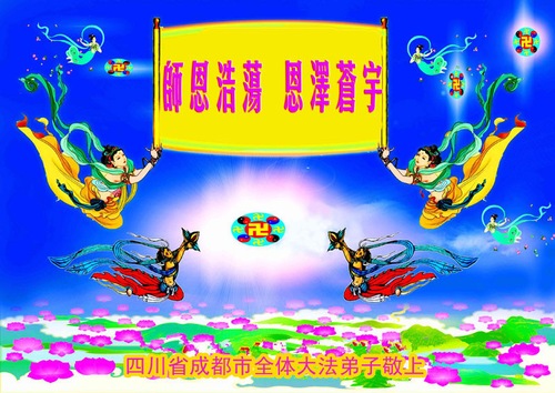 In this report, we list some of the 25 greetings sent to revered Master from Falun Dafa practitioners in Chengdu City, Sichuan Province, China: